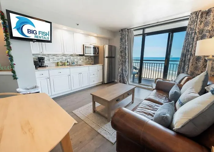 The beachfront 58 m² Oceanfront Retreat W Balcony Views Apartment Myrtle Beach is located in Myrtle Beach, within a 7-km distance of the Barefoot Church, and pampers guests with a hot tub. The North Beach Towers is only a 5-minute walk away, while the public Alabama Theatre is also within a few blocks of the apartment.